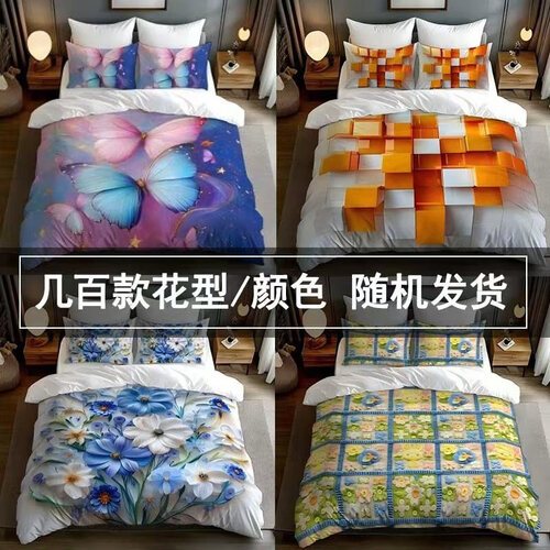 出口外贸捡漏两件套三件套四季床上用品特价处理被套枕套套件清仓 上百款花型随机发货 【1.5m床】 160cm*220cm 被套+50*75cm枕套1只