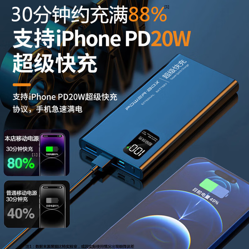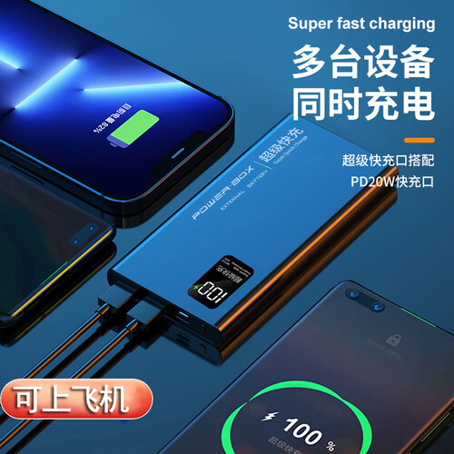 22.5W超级快充充电宝可上飞机小巧便携移动电源 适用华为小米苹果oppo一加vivo 黑色【款式随机发货】双向超级快充20000mAh
