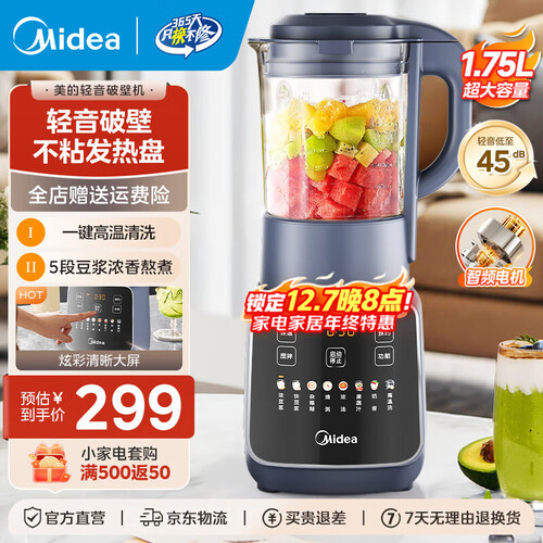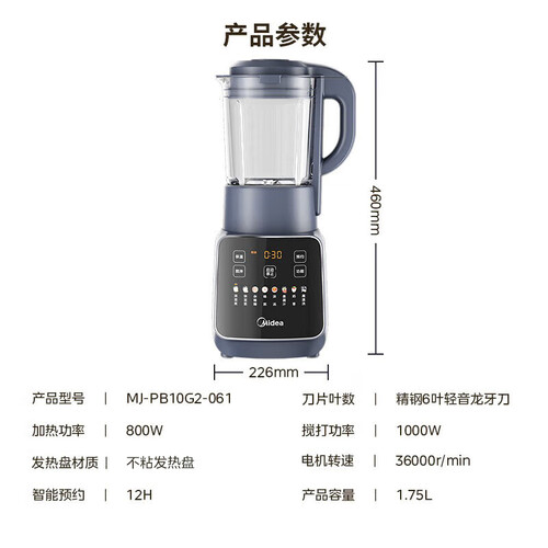- 美的(Midea)破壁机 1.75L家用大容量多功能免滤早餐豆浆机 预约全自动料理机 高温清洗辅食机 静轻音榨果汁机 【1000W大功率】PB10G2-061