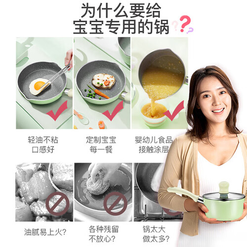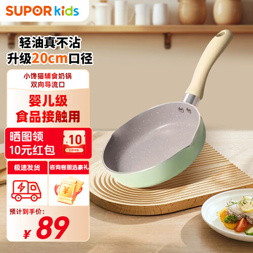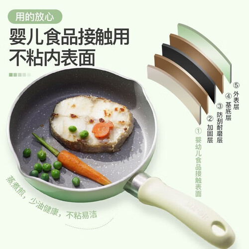 苏泊尔(SUPOR)婴儿辅食锅宝宝煎锅蒸锅奶锅不粘锅平底锅多功能幼儿专用辅食套装 薄荷绿-升级款【20cm辅食煎锅】