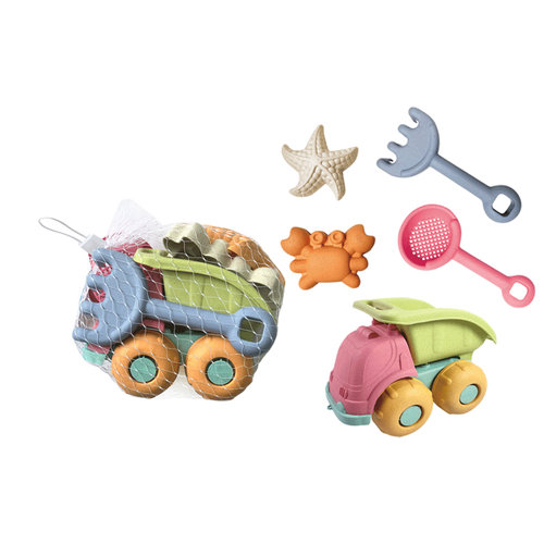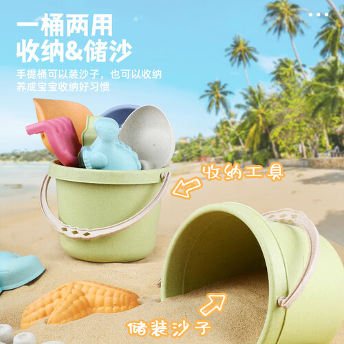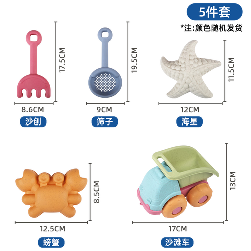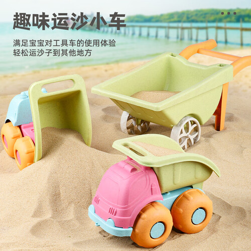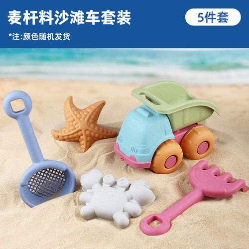 纽奇儿童沙滩玩具宝宝海边玩挖沙戏水沙漏户外工具铲子桶套装麦秆材质 麦杆安全料|沙滩车5件套
