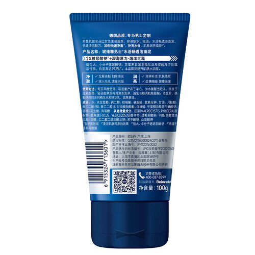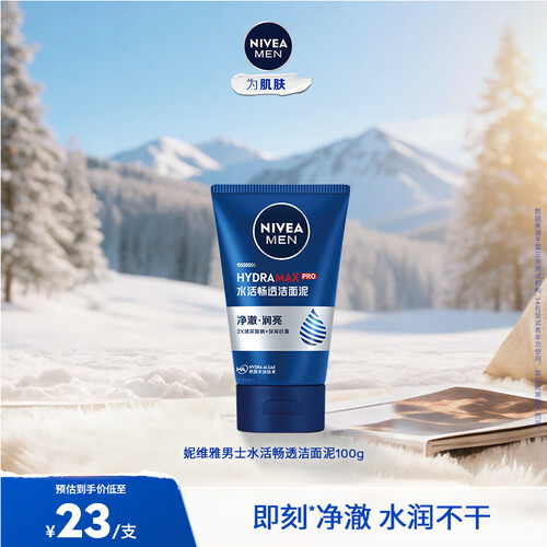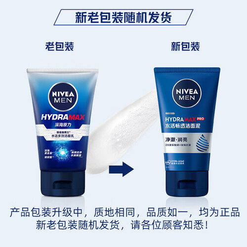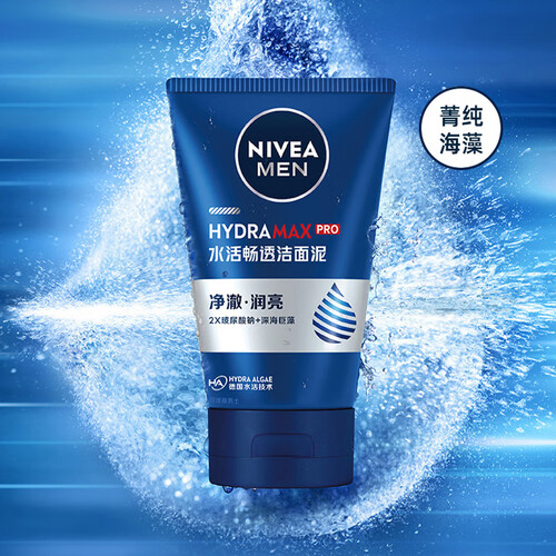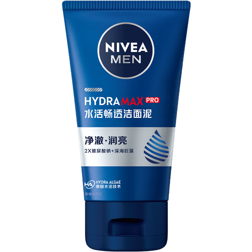 妮维雅(NIVEA)男士洗面奶洁面乳清洁清爽男士护肤品不紧绷男士洁面 水活畅透洁面泥100g