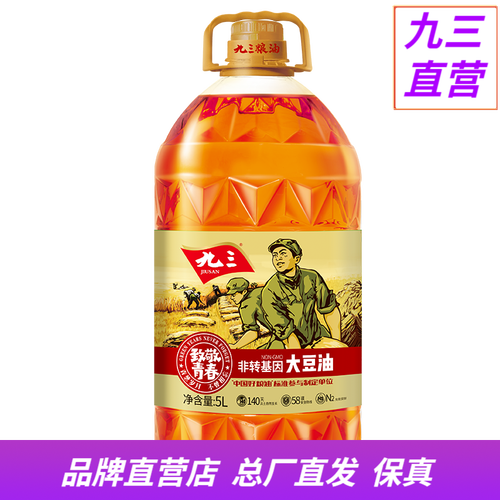 九三非转基因 三级大豆油5L 致青春系列 食用油