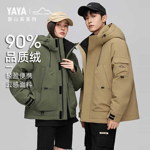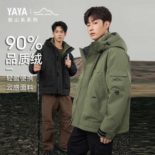 鸭鸭(YAYA)【王一博同款】户外登山羽绒服男士2024冬季新款短款加厚外套YX 军绿色 S /165