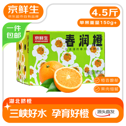 - 京鲜生 湖北纽荷尔脐橙 净重4.5斤 单果150g起 源头直发包邮
