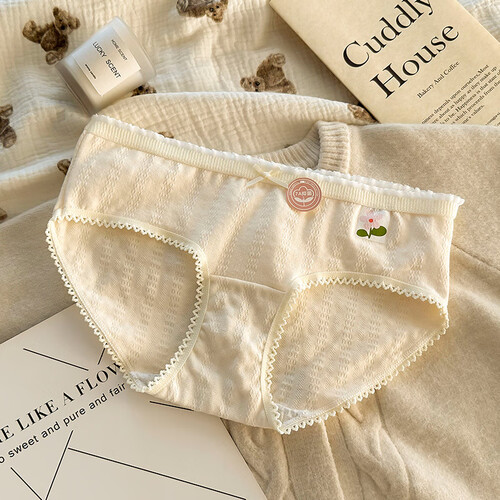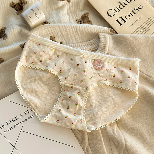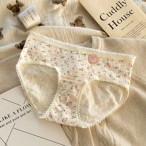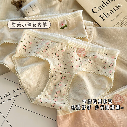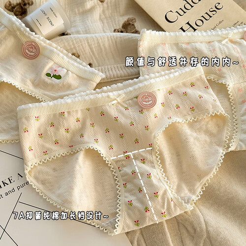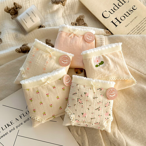 雅鹿纯棉内裤女日系甜美清新碎花学生全棉7A透气三角短裤少女底裤 肤色+五角星+肤小花+大花+ 5条 M 【码数偏小,升级M-L通码】