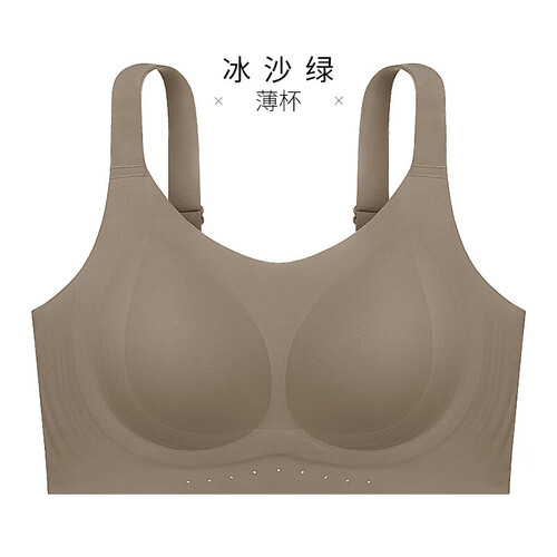 千奈美无痕粉底液内衣女士全罩杯大胸显小隐形不透收副乳文胸 冰沙绿 75B C 通杯