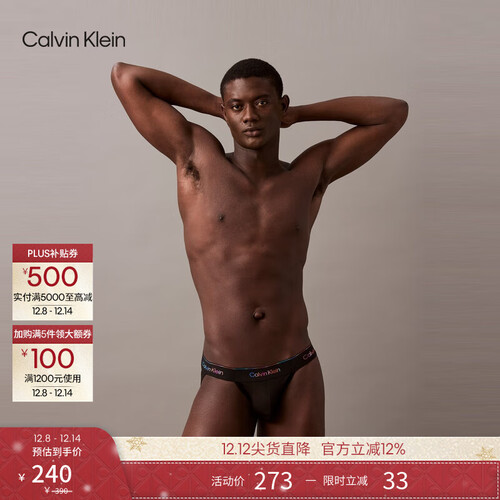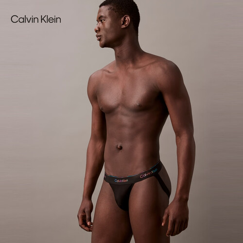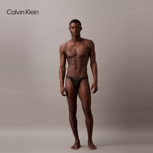 Calvin Klein内衣25男士炫彩腰边ck轻薄弹力潮流性感黑色镂空三角裤双丁裤男 UB1-太空黑 1条 S