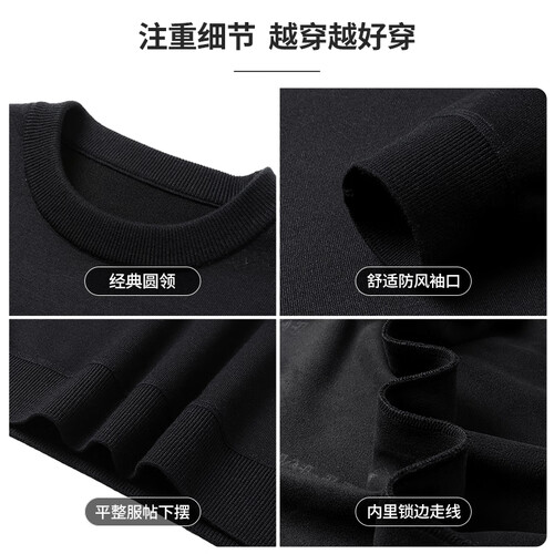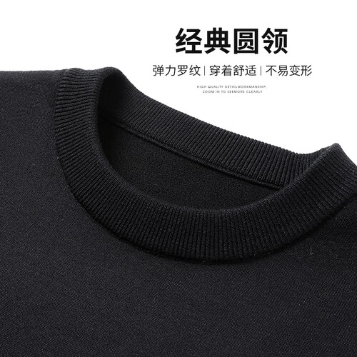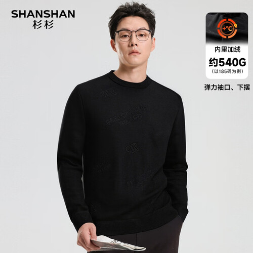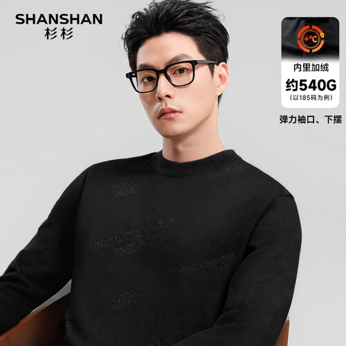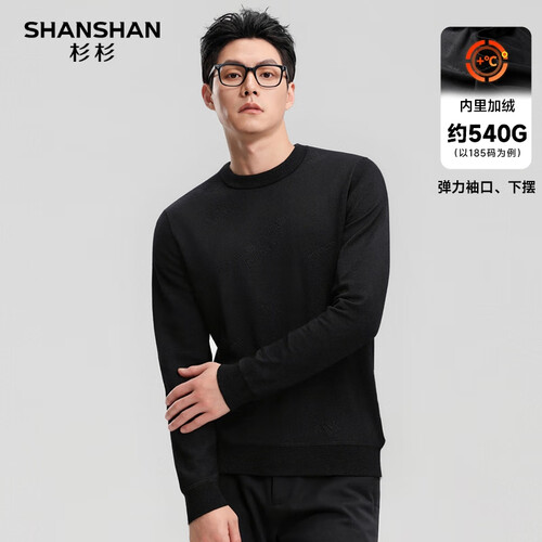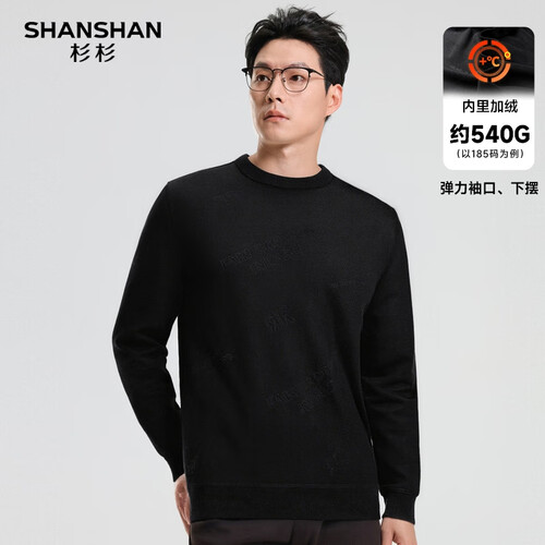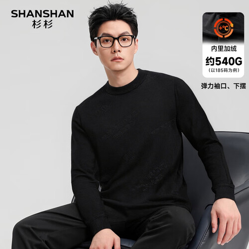 SHANSHAN杉杉纯羊毛衫男秋冬新款加厚保暖毛衣中青年打底衫针织衫拉链领 黑色 S /165