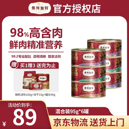 弗列加特98%高含肉量 国产猫罐头95g 主食罐全猫幼猫成猫通用 湿粮猫罐头 【正装囤货】混合装95g*6罐