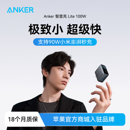 ANKER安克【新3C认证】充电器充电头苹果17智能双视窗配线套装氮化镓typ-cPD快充100W插头三口适用平板 银色|100W充电器|三口智能屏显