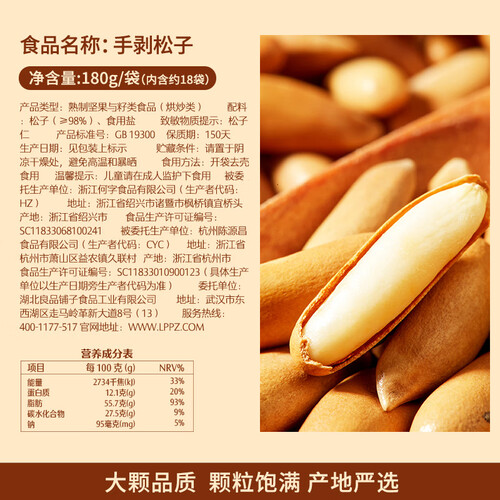 良品铺子巴西松子手剥松子当季鲜果高端送礼坚果零食特大级进口原料坚果 【壳薄易剥】手剥松子180g/18小包