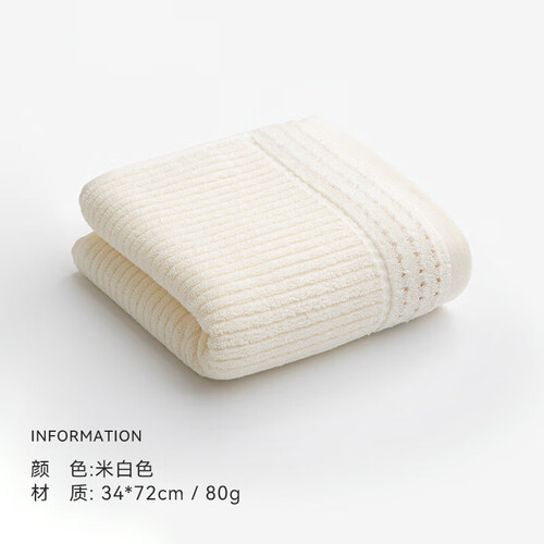 三利新疆棉毛巾纯棉100%纯棉加厚柔软吸水男士女洗脸面巾 米白 1条