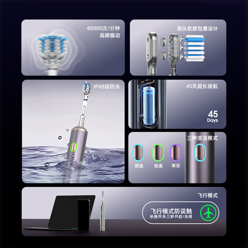 博皓(prooral)电动牙刷新一代扫振智能成人牙刷深度清洁牙齿 3档模式净齿护龈 送学生情侣款生日礼物 LS-1 浪漫紫(标配4支刷头)
