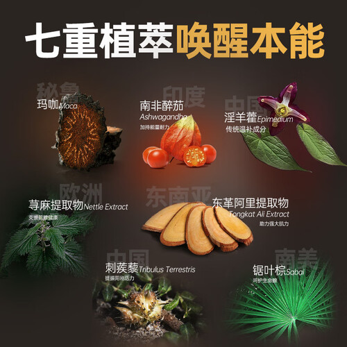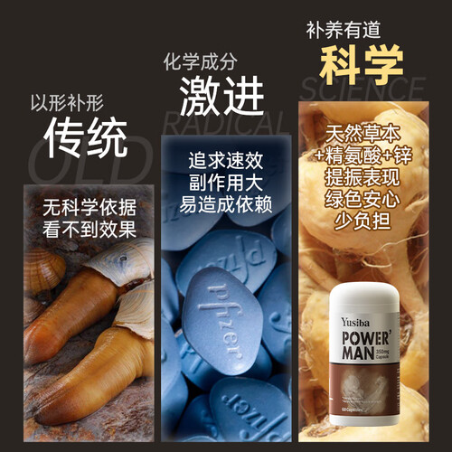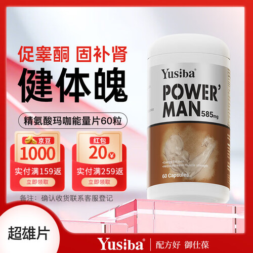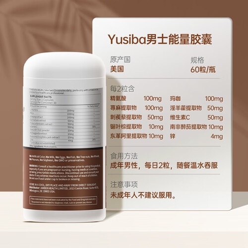 Yusiba精氨酸100mg玛咖复合促睾酮素60粒 增肌男性二次发育加粗加大补肾 【滋补雄风片】1瓶装