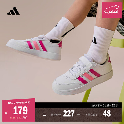 adidas男小童BREAKNET 2.0 EL魔术贴板鞋阿迪达斯轻运动 白色/亮紫红色/粉色 28