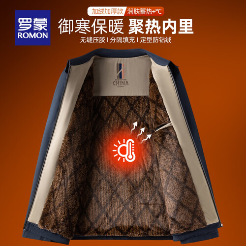 罗蒙石墨烯行政保暖翻领棉服男秋冬新款中年棉袄加绒加厚外套爸爸装 藏青色【翻领款】 M (170) (建议90-105斤)