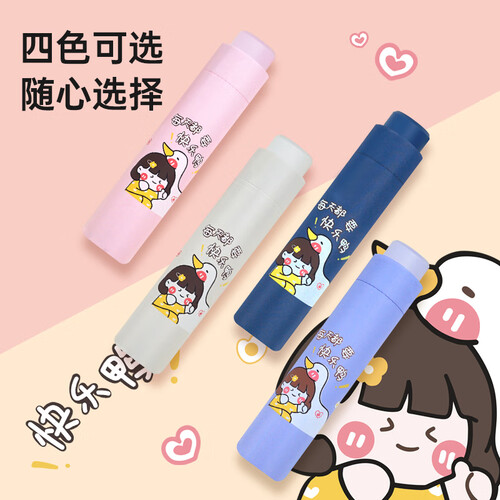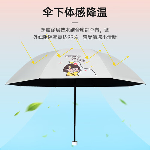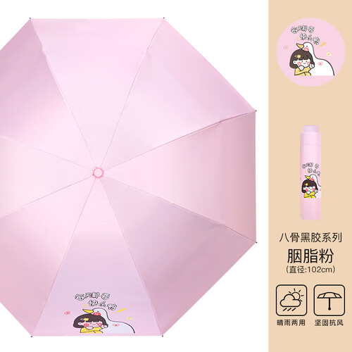 红叶upf50+三折雨伞晴雨两用黑胶遮阳伞男女士防晒防紫外线太阳伞 快乐鸭-胭脂粉