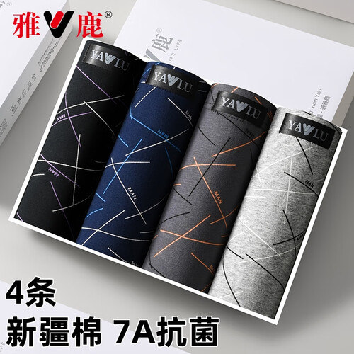 雅鹿内裤男纯色棉质男士内裤宽松大码舒适抑菌平角内裤裤衩 棉内裤A 4条 L (建议体重75-95斤)
