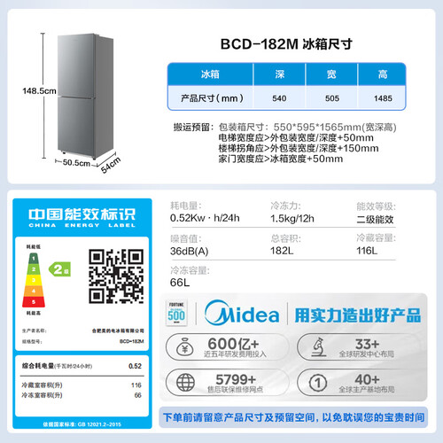 美的(Midea)182升双开门两门小户型家用客厅租房宿舍冰箱可冷藏冷冻小巧不占地低音运行BCD-182M【国家补贴】