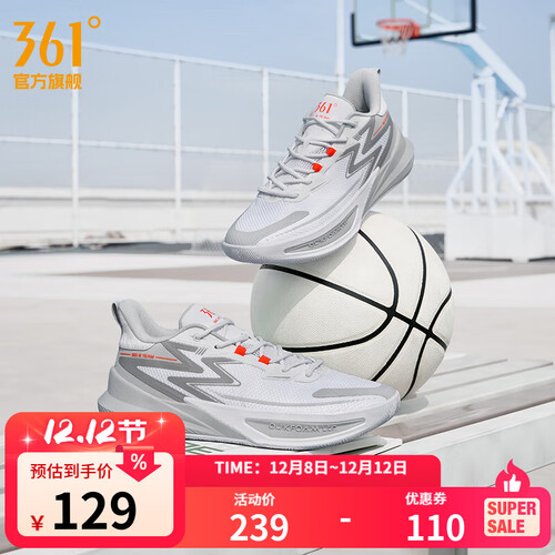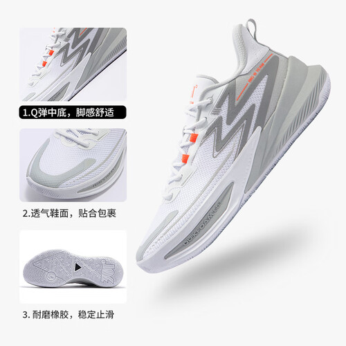 361°篮球鞋男鞋BIG3 Team2秋季新款实战耐磨防滑专业篮球训练鞋 白灰【网布透气】 39