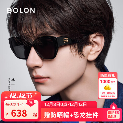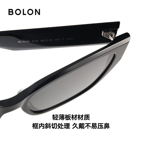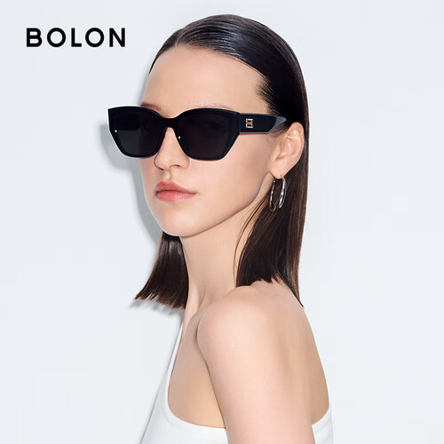 BOLON暴龙眼镜25年新品林一同款猫眼太阳镜防晒遮阳墨镜男女款BL3209 【明星同款】C10 亮黑色-偏光