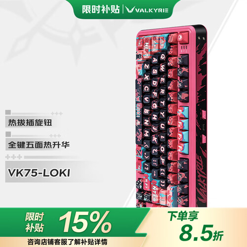 - 瓦尔基里(VALKYRIE)VK75 客制化机械键盘 三模2.4G/有线/蓝牙 全键热插拔 VK75-LOKI