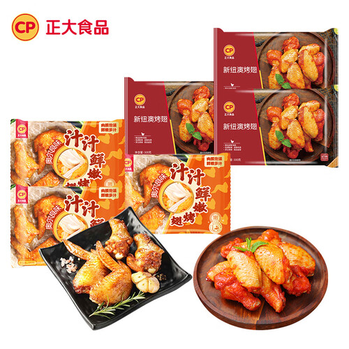 - 正大 鸡翅 烤鸡翅 蜜汁 翅中 翅根 冷冻 腌制半成品 汁汁鲜嫩烤翅300g*3+新纽澳烤翅300g*3