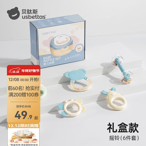 贝肽斯宝宝手摇铃新生婴儿玩具0-6个月益智抓握训练牙胶可咬1岁早教玩具 经典摇铃六件套+礼盒装