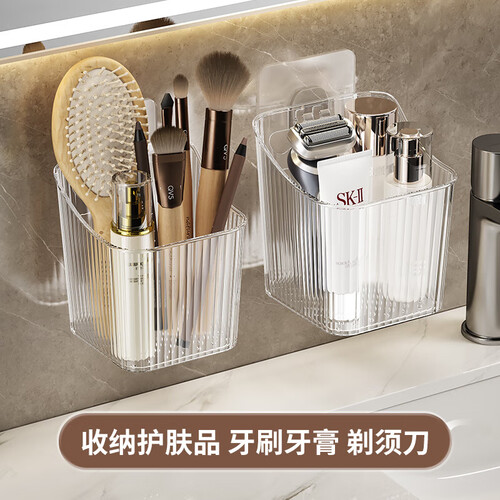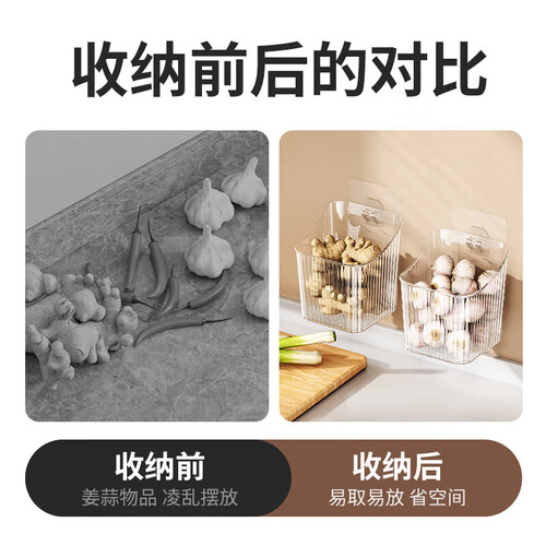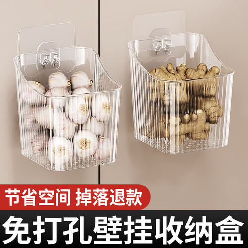 收纳置物架厨房葱姜蒜收纳盒卫生间置物壁挂浴室多功能挂篮收纳筐 透白款【1个装】