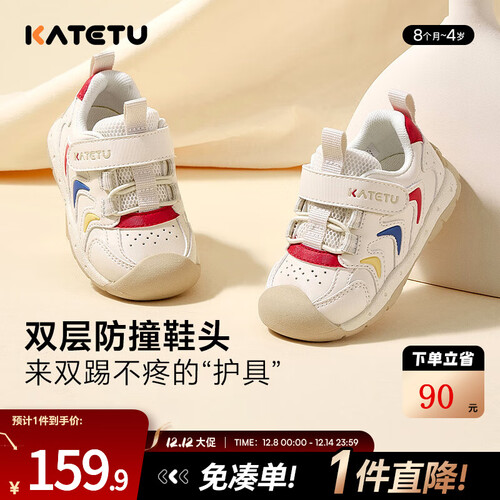 卡特兔婴儿学步鞋秋冬宝宝棉鞋1-3岁幼儿园童鞋加绒软底室内鞋子 白红 21 内长13.0cm 脚长12.0-12.5