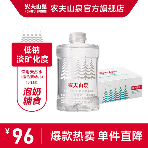 农夫山泉 饮用水 饮用天然水(适合婴幼儿) 整箱 1L*12瓶
