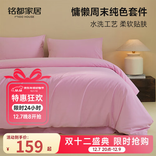 - MIDO HOUSE铭都A类床上四件套纯棉全棉套件亲肤纯色水洗棉被套床单床笠床品 绛纱粉【100%全棉-水洗工艺】 1.5m 床单款 (被套200*230cm)