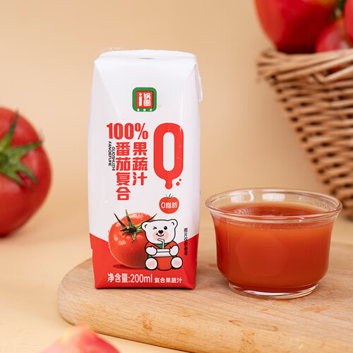 锅圈100%番茄汁果汁饮料饮品200ml*10盒整箱【保质期剩余3个月】 番茄复合果蔬汁200ml*10盒