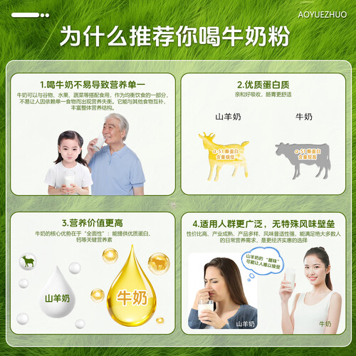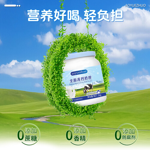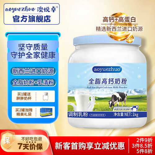 AOYUEZHUO全脂高钙奶粉蓝胖子高蛋白0蔗糖中老年儿童学生成人奶粉进口奶源 全脂高钙牛奶粉1kg*1罐