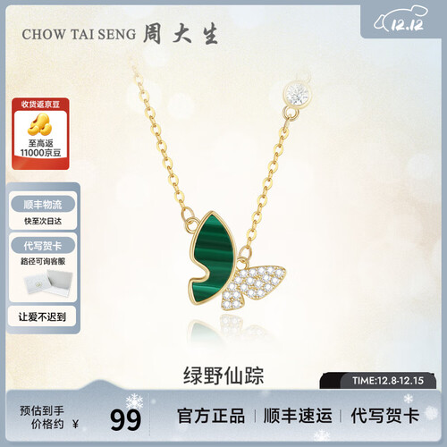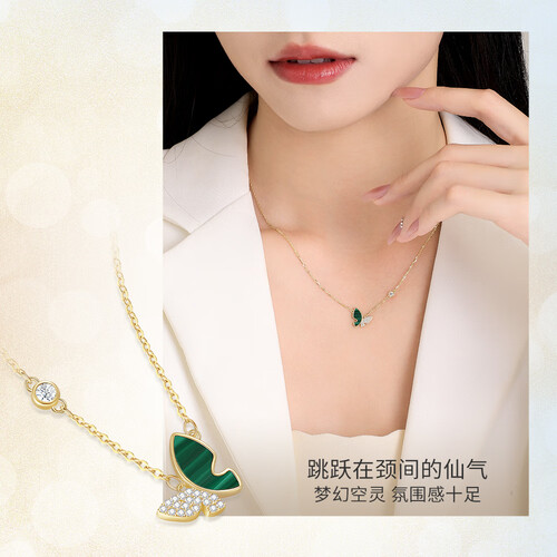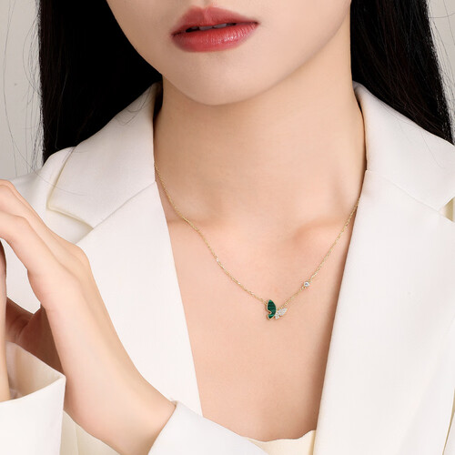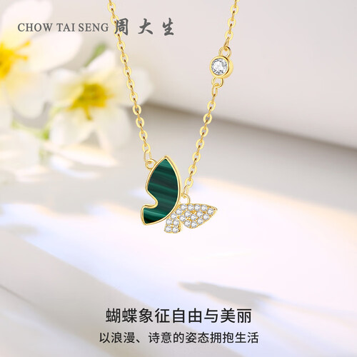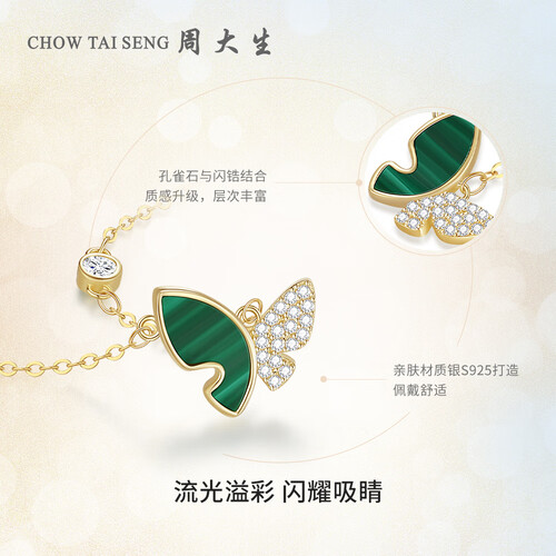 - 周大生绿野仙踪蝴蝶项链女纯银锁骨链孔雀石送女生圣诞礼物送女生 绿野仙踪项链