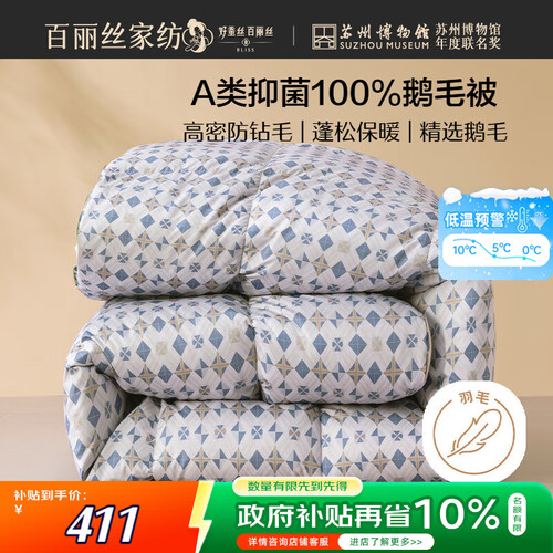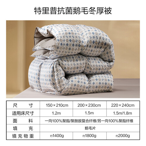 - 百丽丝羽绒被被子100%鹅毛被羽绒冬季保暖加厚抗菌冬厚被子填充约1800g