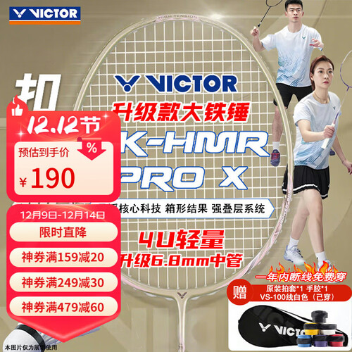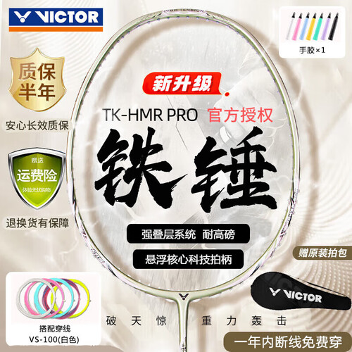 - 威克多威克多羽毛球拍胜利铁锤碳素纤维单拍TK-HMR PRO琉璃金4U已穿线