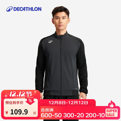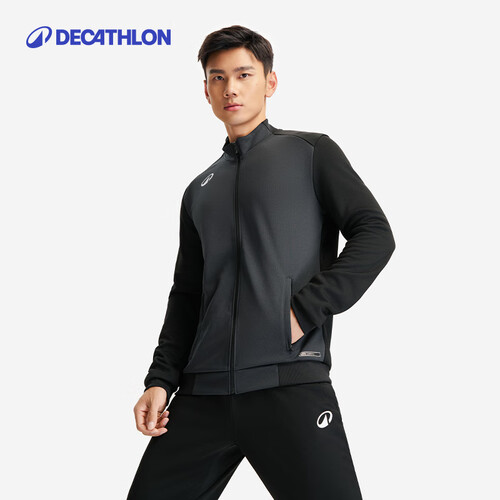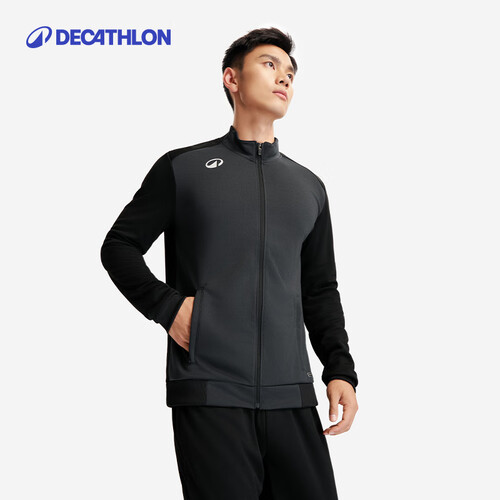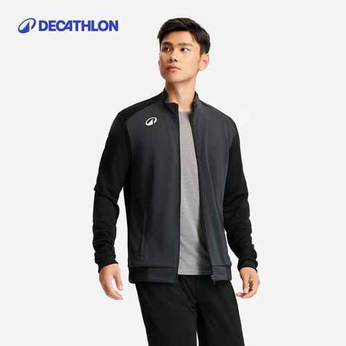 迪卡侬运动夹克足球训练外套户外跑步服保暖男经典黑S-4283549