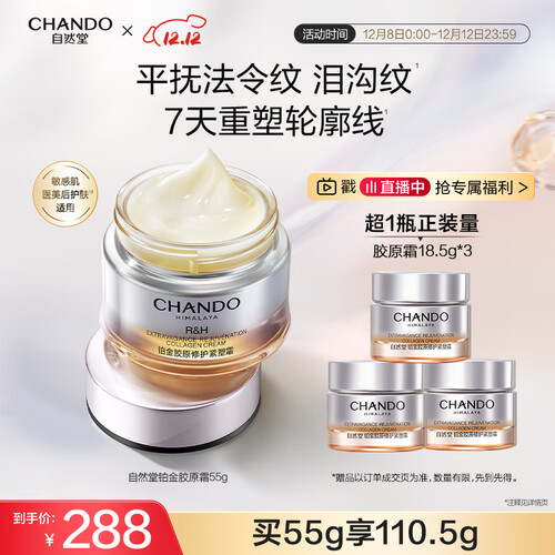 - 自然堂【龚俊同款】铂金胶原修护紧塑霜55g面霜抗皱紧致保湿圣诞礼物