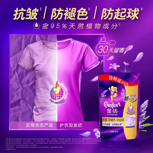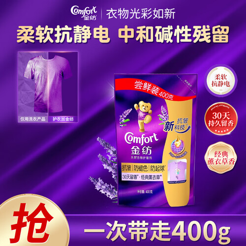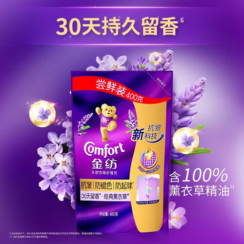 - 金纺衣物护理柔顺剂薰衣草香型防静电抗皱防褪色防起球持久留香 金纺柔顺剂薰衣草400g