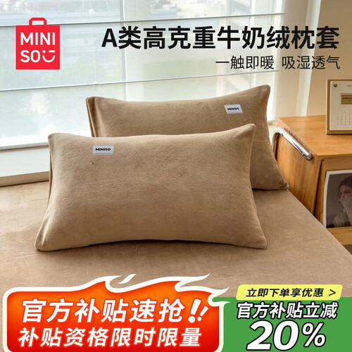 名创优品(MINISO)牛奶绒枕套一对装 秋冬季保暖加绒枕芯保护套枕头套一对48*74cm