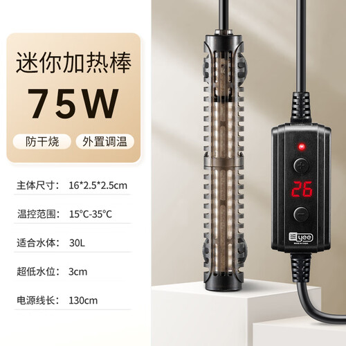 YEE加热棒小型鱼缸加温棒自动恒温智能迷你乌龟加热器龟缸低水位75w