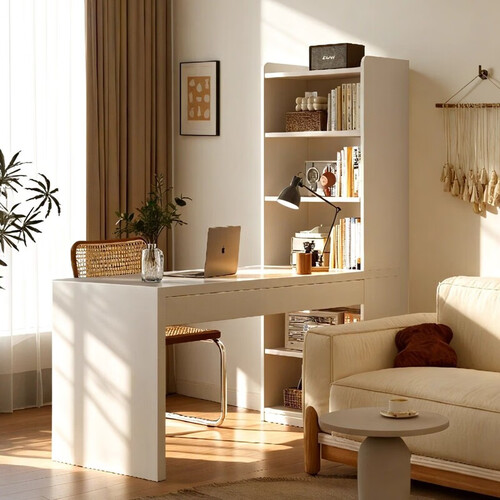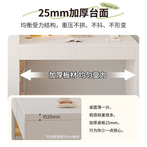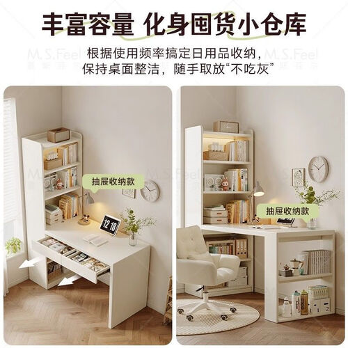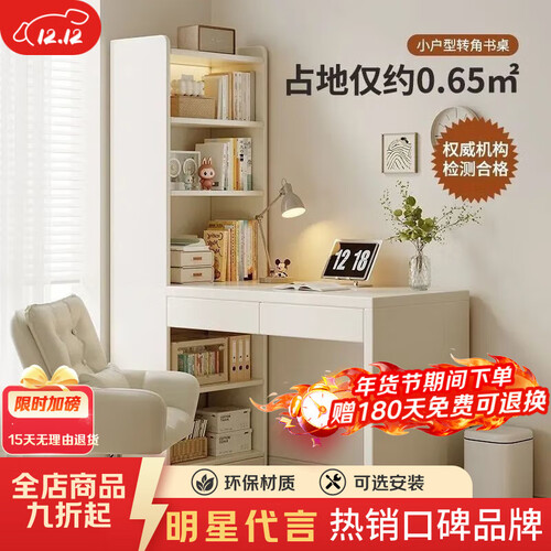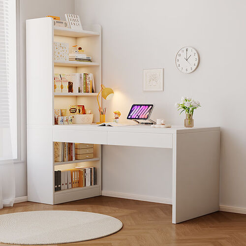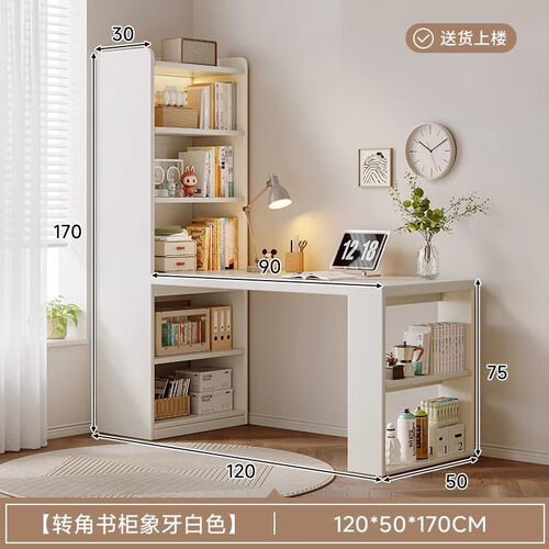 - 豪利邦转角书桌书架书柜一体桌子学生家用写字学习桌卧室实木电脑办公桌 【25mm桌面侧边收纳款】120cm白色