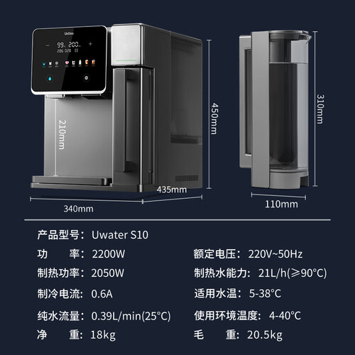 有逸(Unities)Uwater S10制冰即热家用台式净饮机净水器直饮0阻垢剂反渗透免安装玻璃纯水壶 深空灰 政府补贴