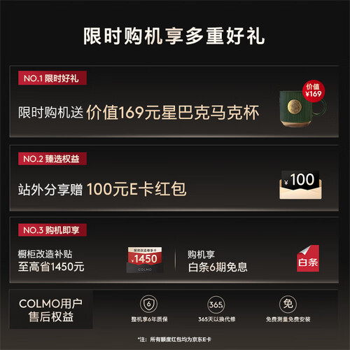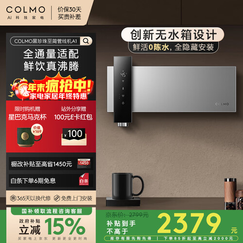COLMO黑珍珠至简管线机A1壁挂即热加热家用热水机直饮政府补贴 净饮机伴侣无水箱全通量0陈水
