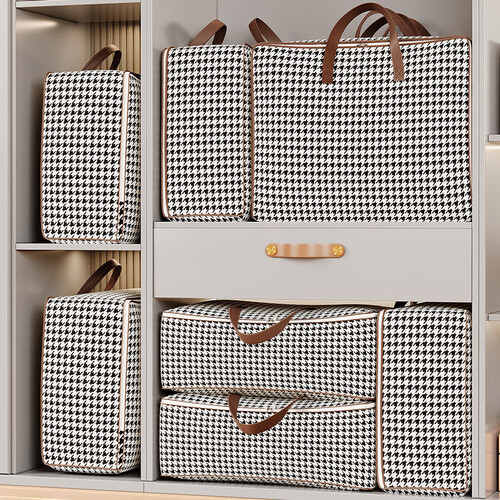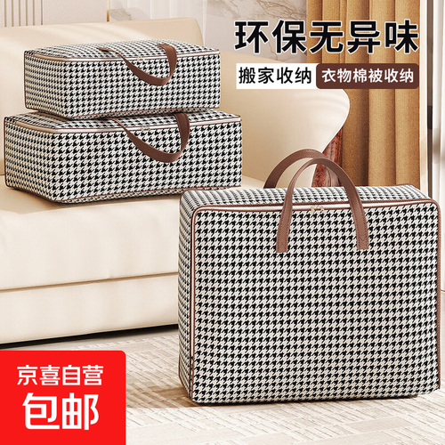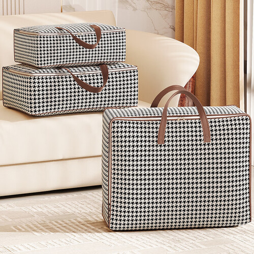 搬家打包袋千鸟格衣服收纳袋卧室衣柜整理箱学生宿舍布艺储物袋子 80*30*60超大号150L