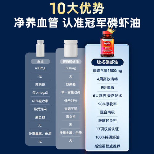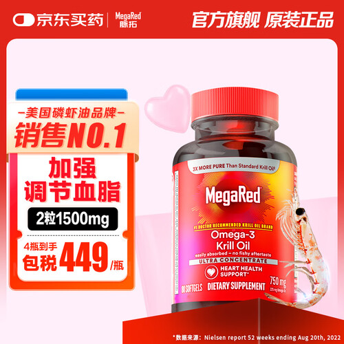MegaRed脉拓南极磷虾油软胶囊深海鱼油omega-3美国进口高纯度750mg80粒 【热销爆款】加强调节血脂