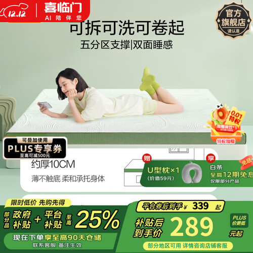 喜临门原野垫政府补贴记忆棉床垫软租房垫寝室海绵垫学生宿舍薄床垫子 原野垫【租房必备,双面可睡】 90*190cm