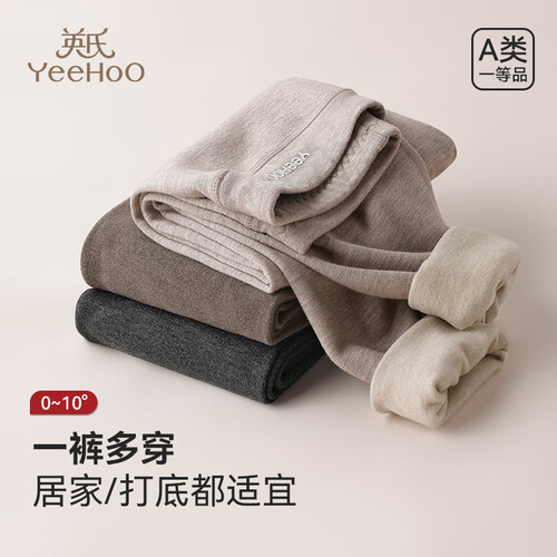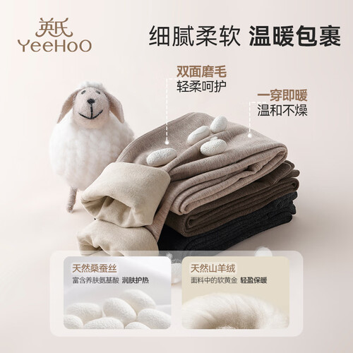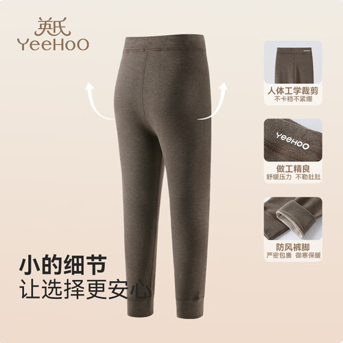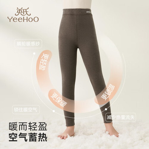 英氏(YEEHOO)儿童保暖裤男女童秋冬季磨毛锁温亲肤透气吸湿高弹加肥加大打底裤 焦糖色【加肥加大】 110